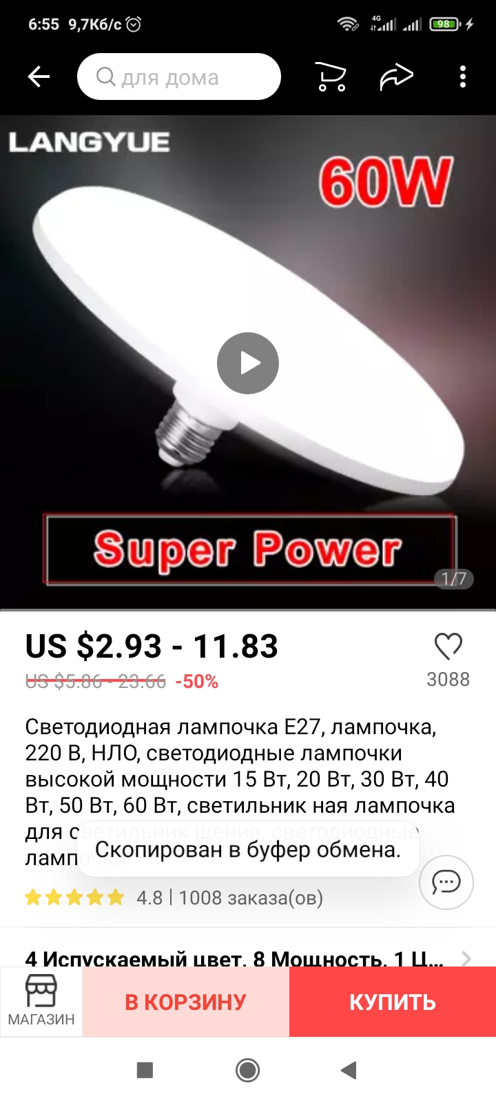 @женяхарьков Спасибо. Тридцативаттная лампочка за 82р - весьма неплохо.