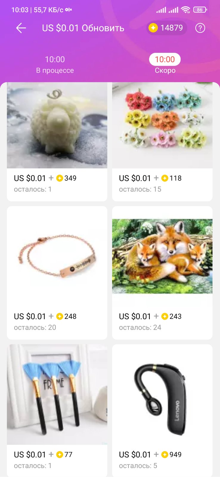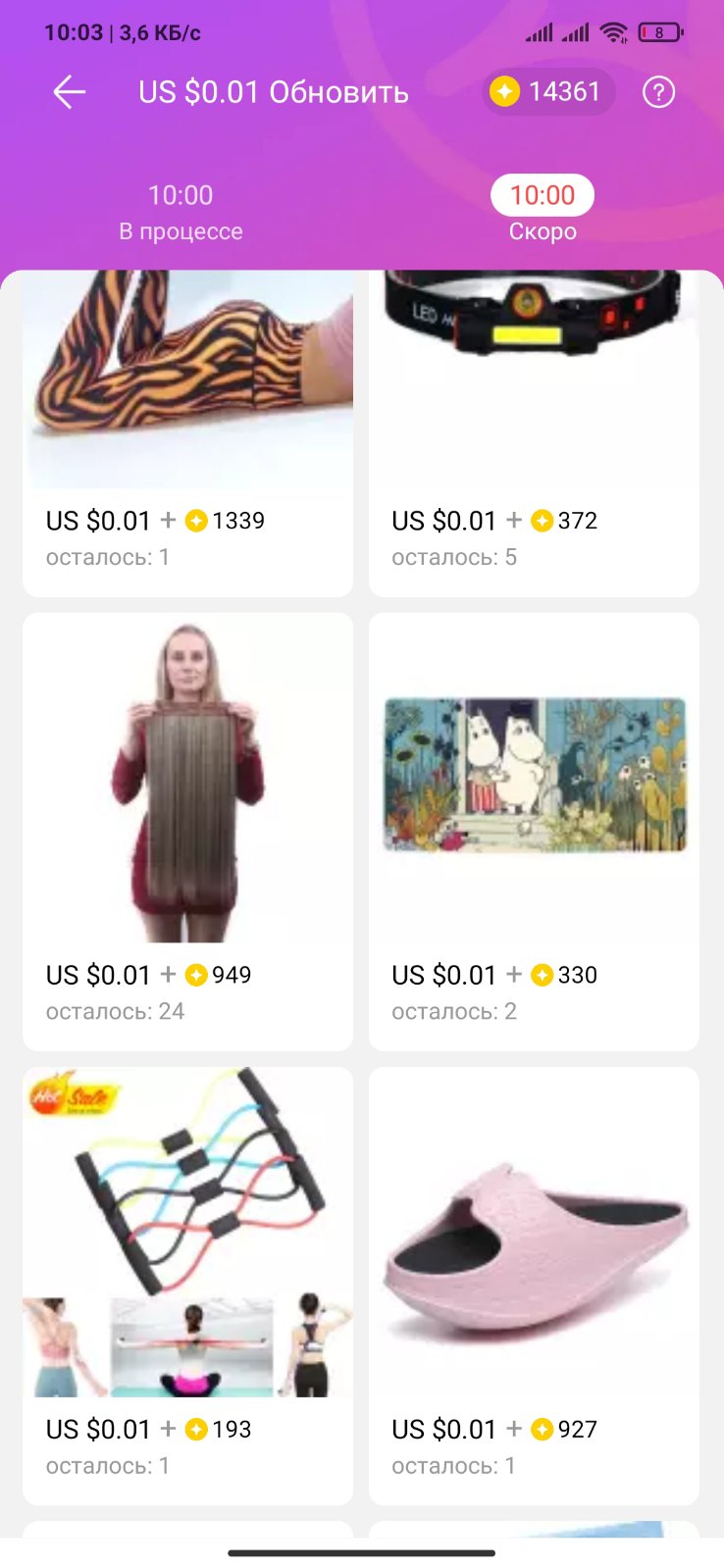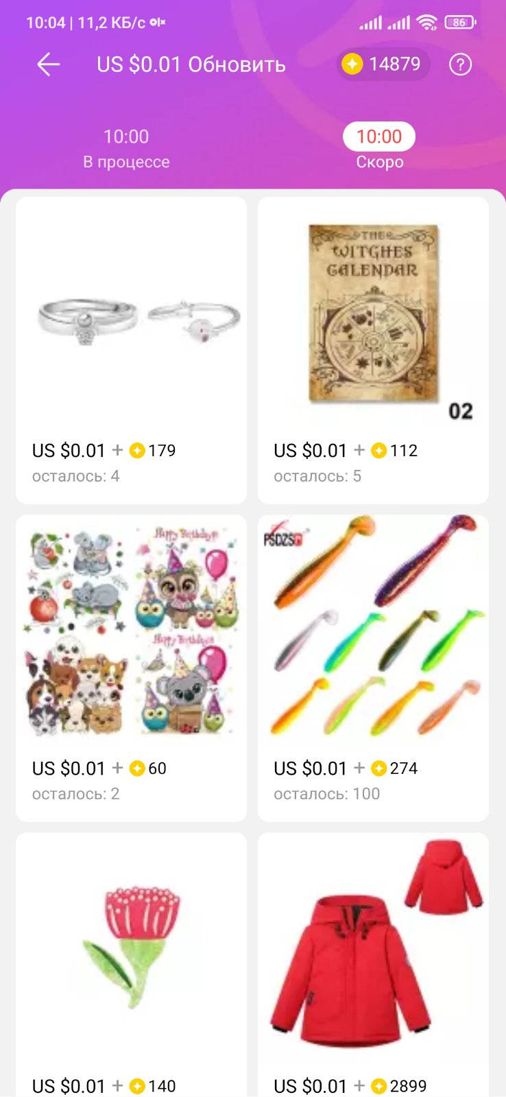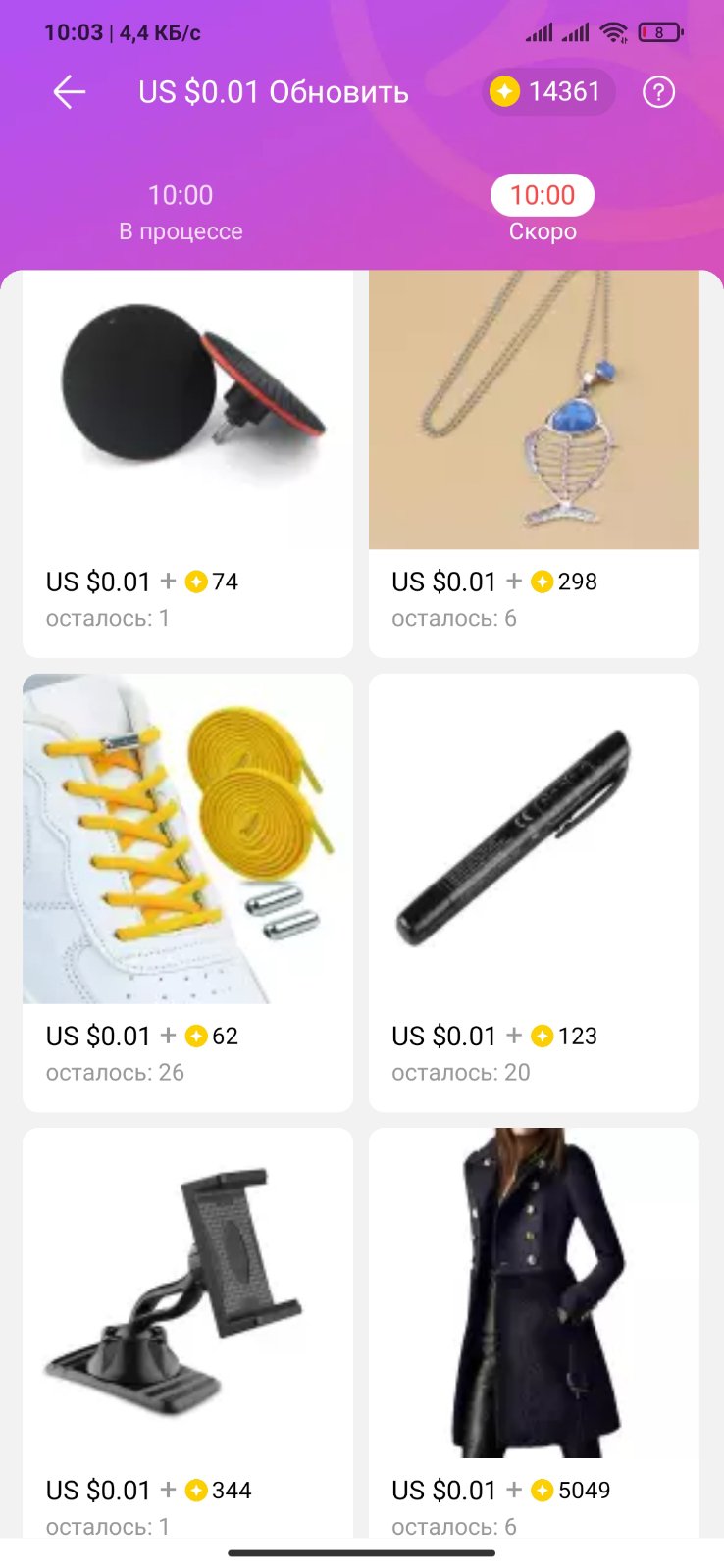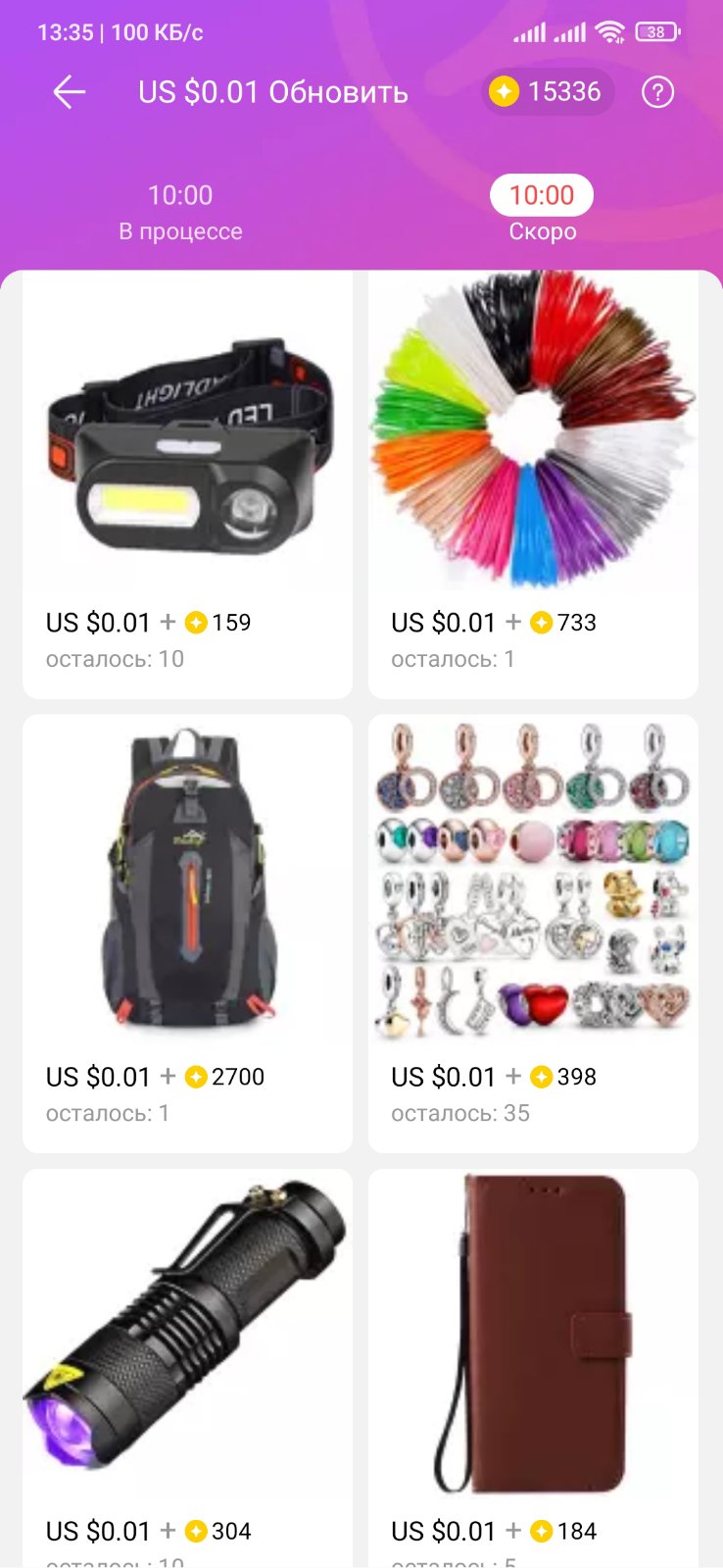 Ежедневная лотерея с товарами за $0,01 + монетки