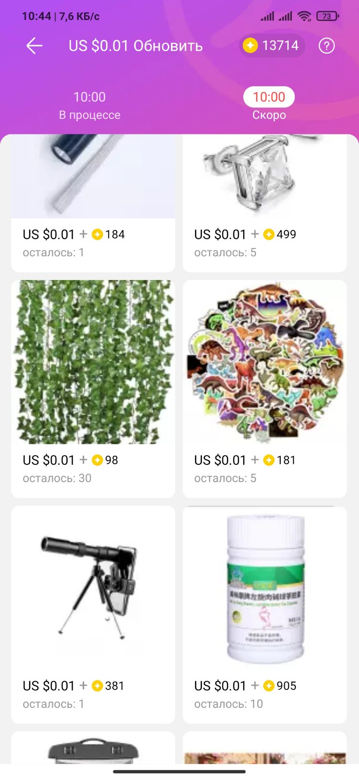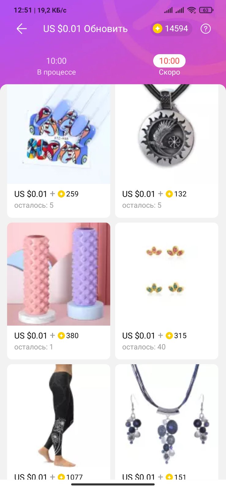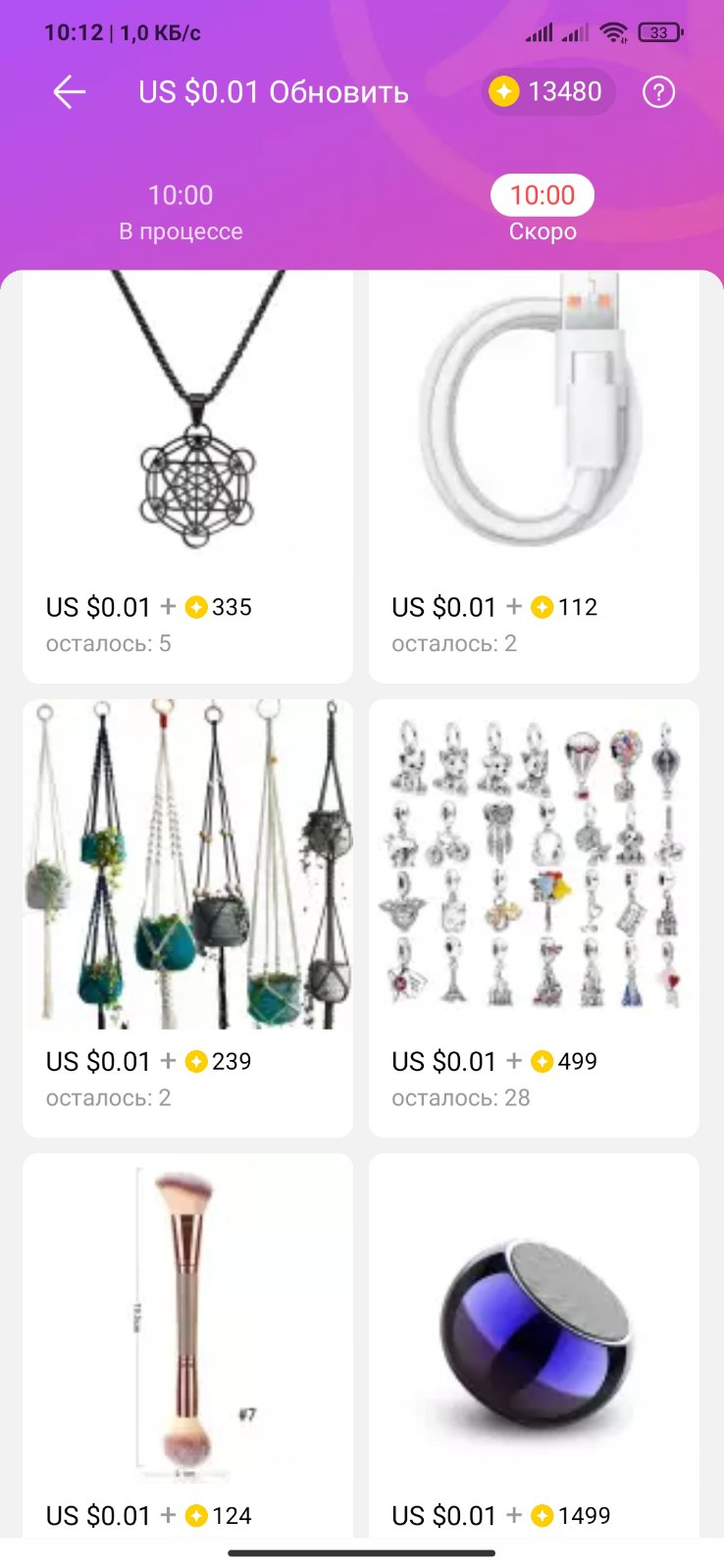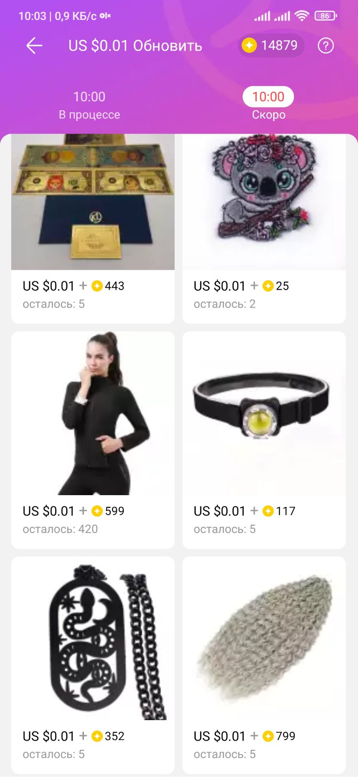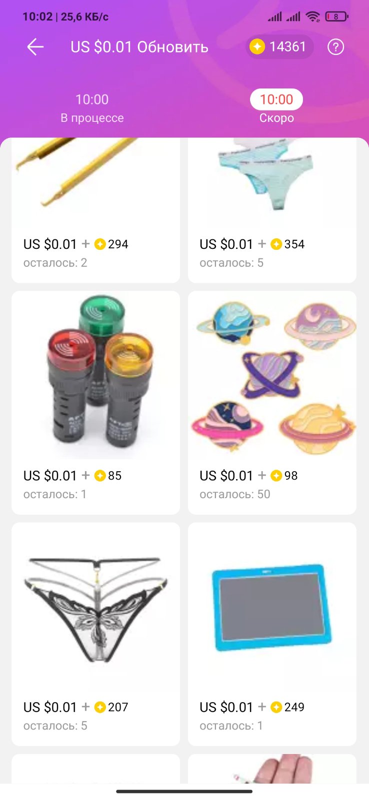 Ежедневная лотерея с товарами за $0,01 + монетки