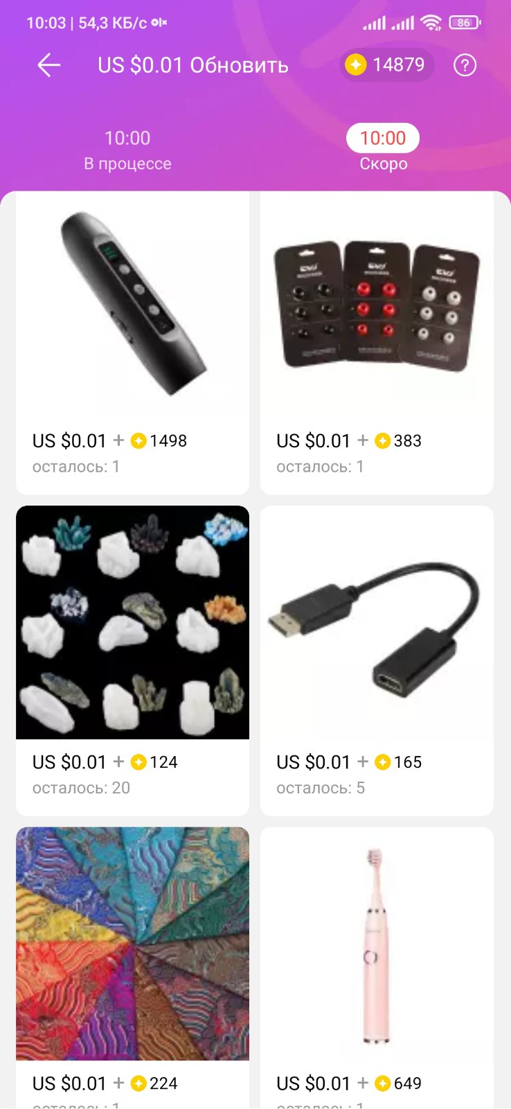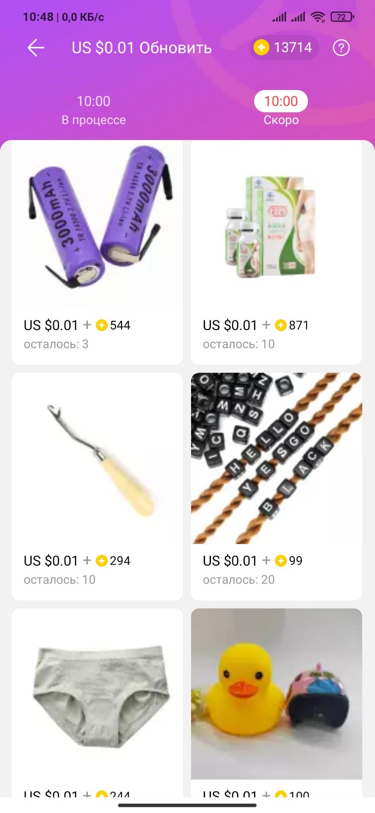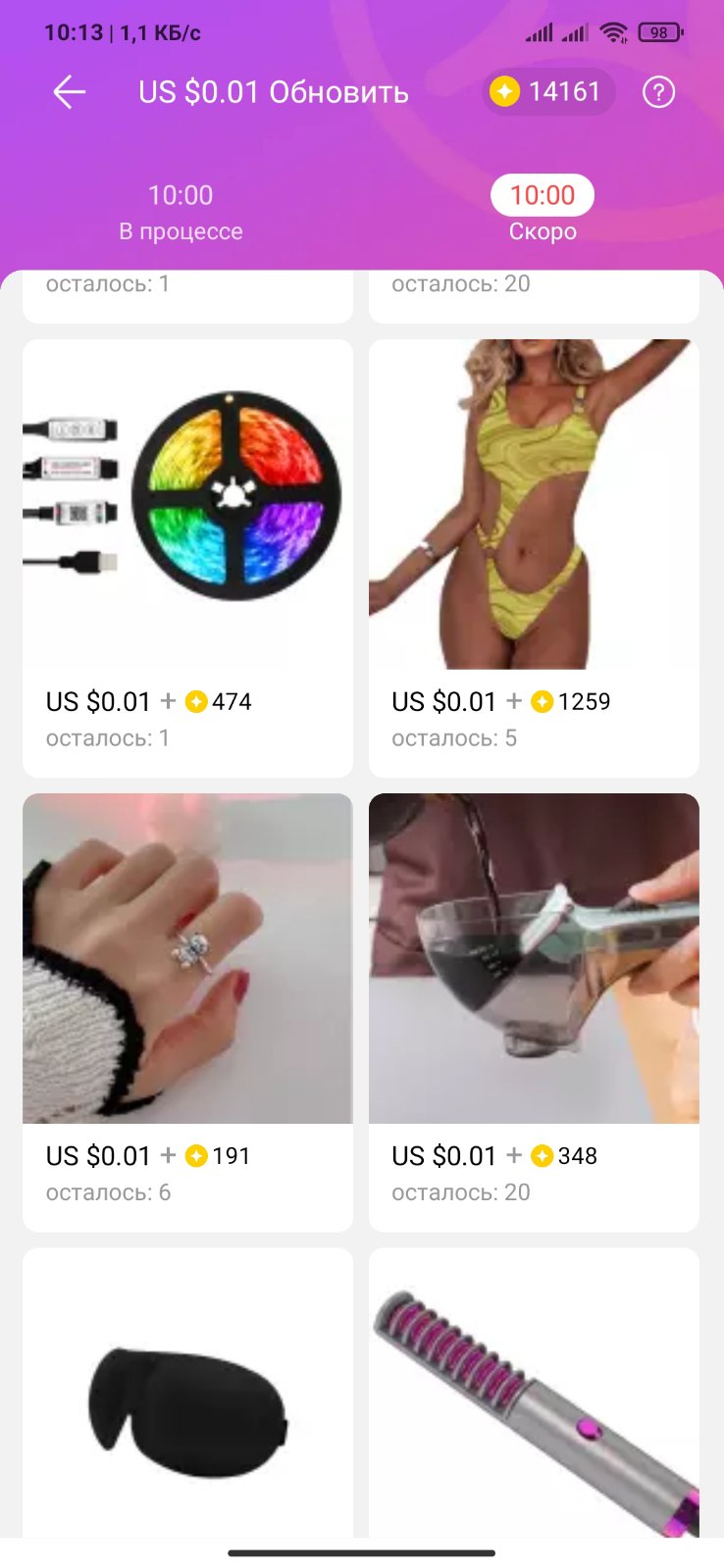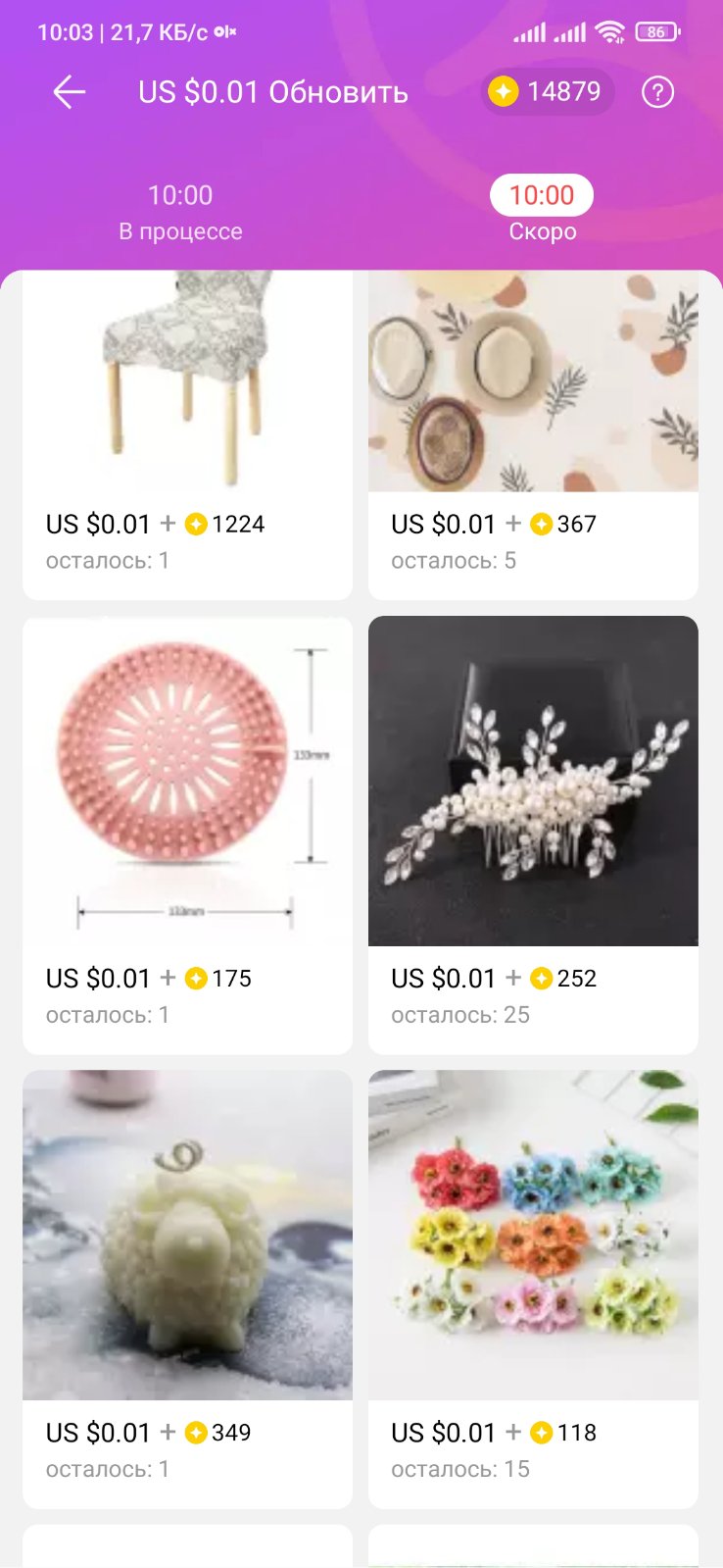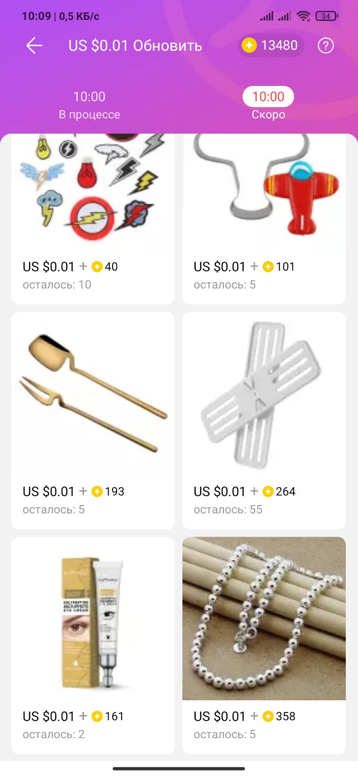 Ежедневная лотерея с товарами за $0,01 + монетки