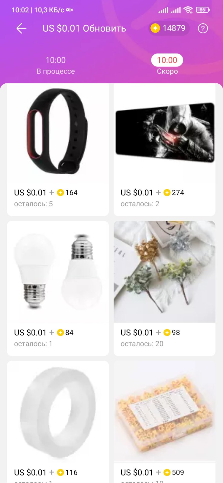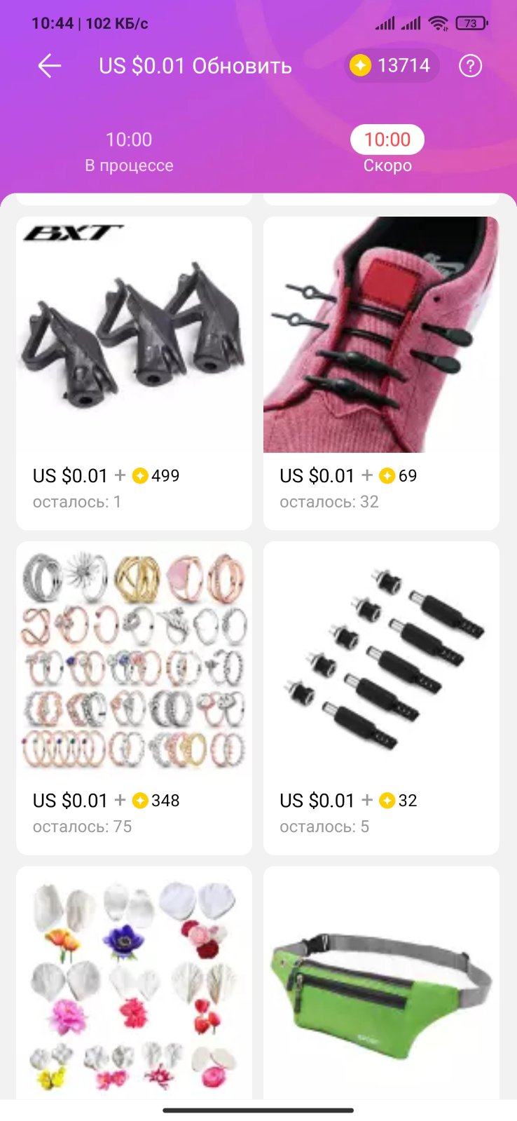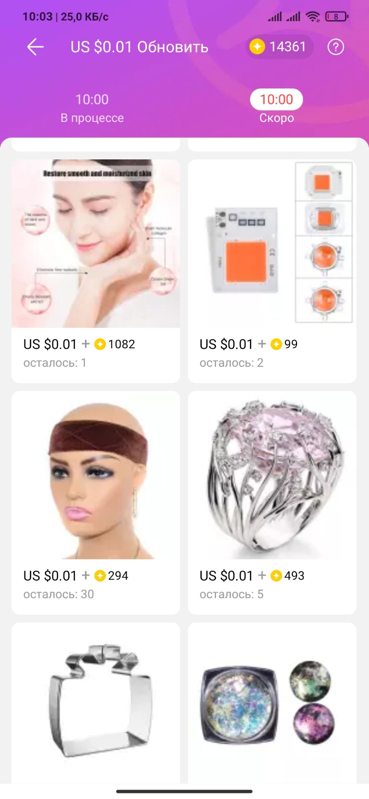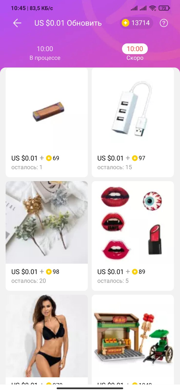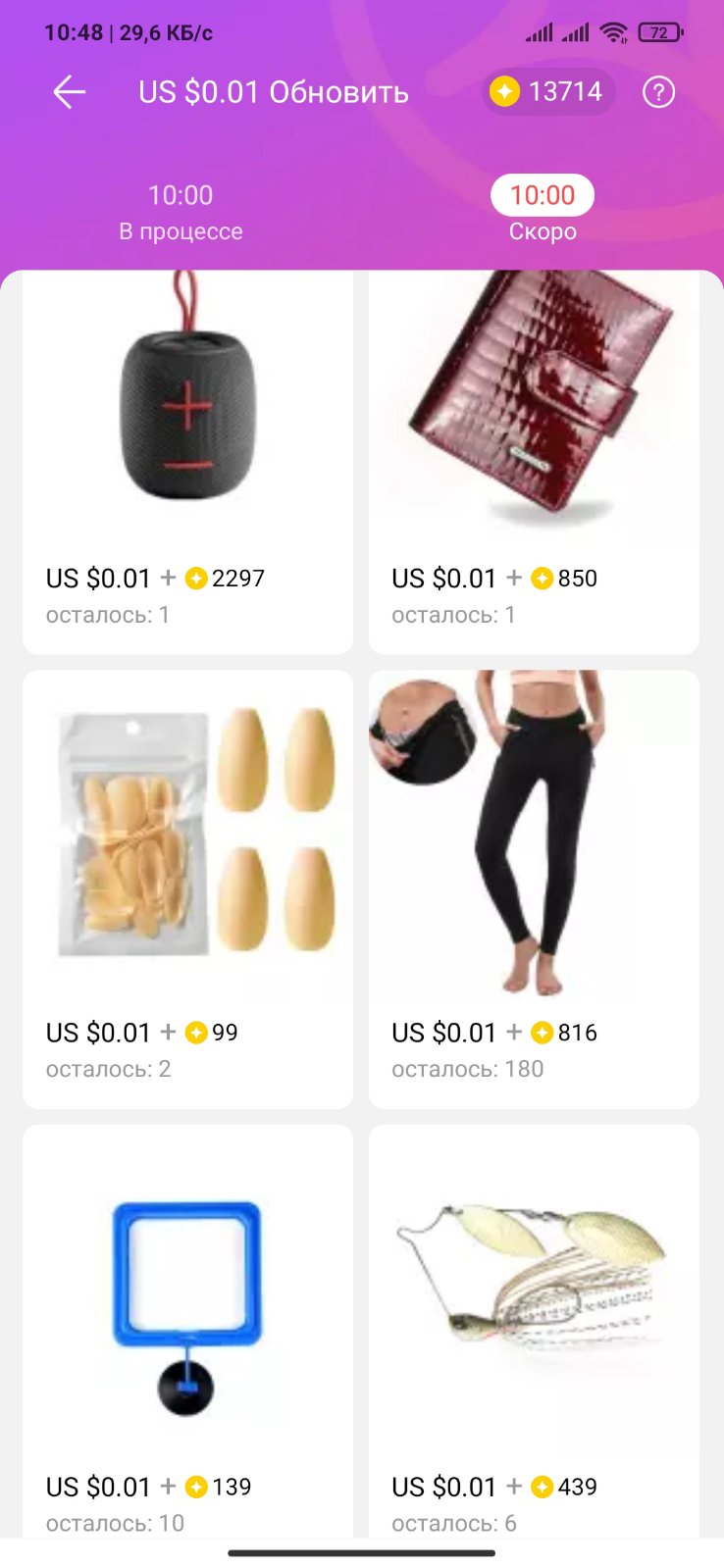 Ежедневная лотерея с товарами за $0,01 + монетки