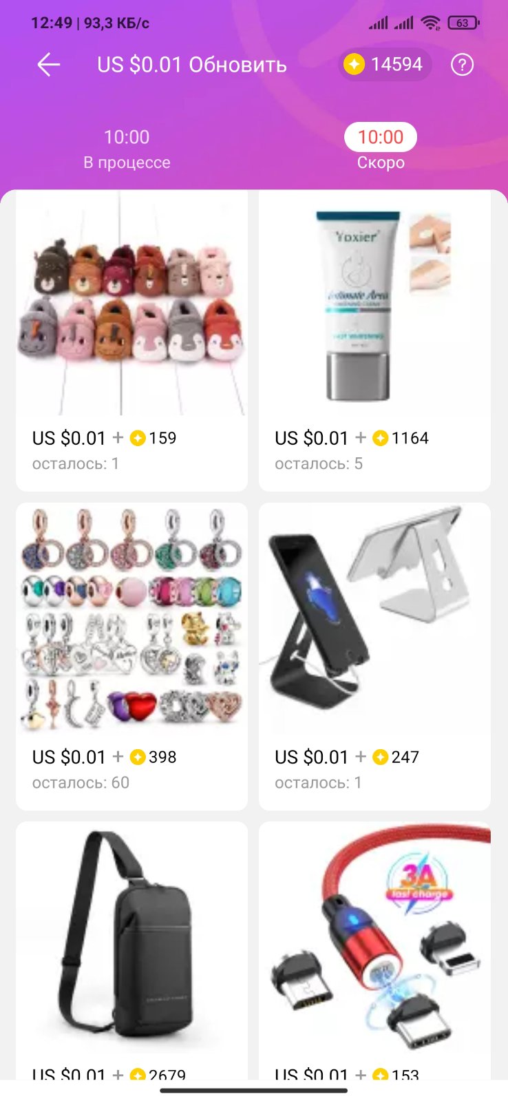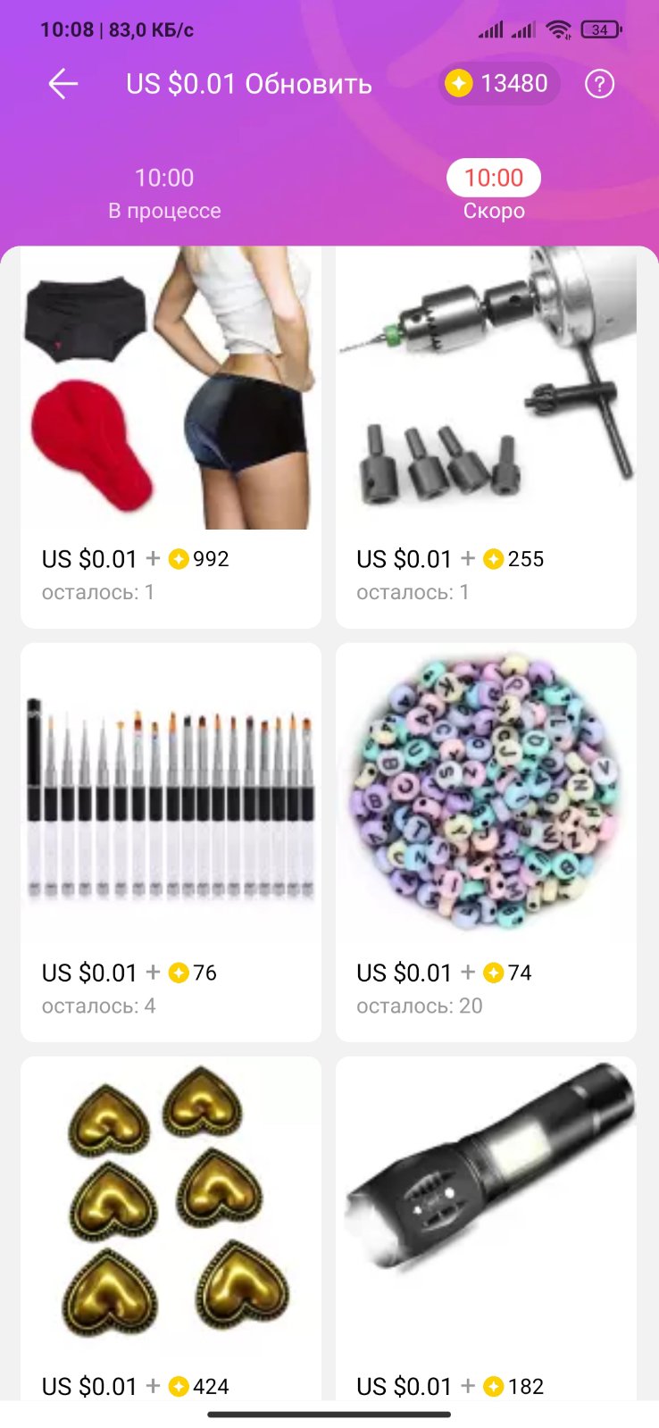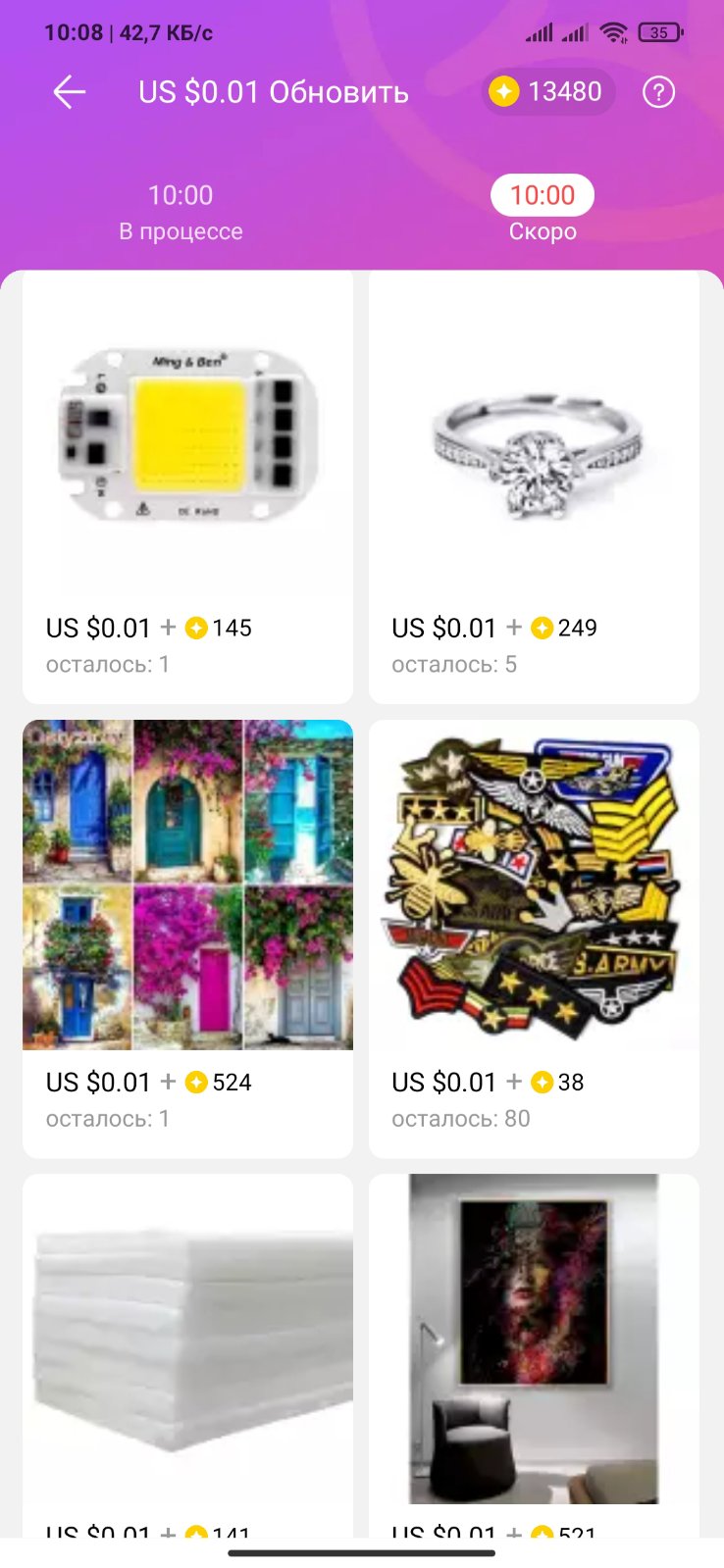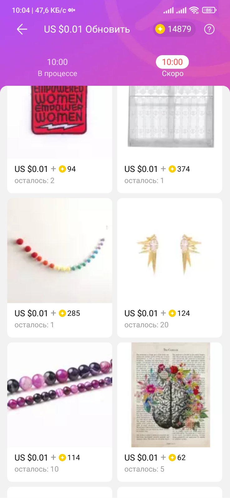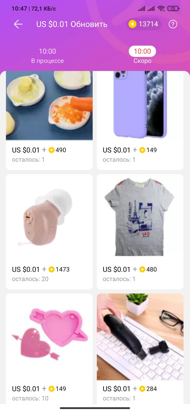 Ежедневная лотерея с товарами за $0,01 + монетки