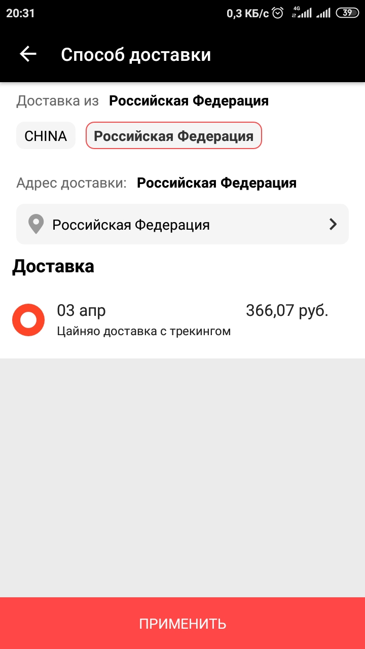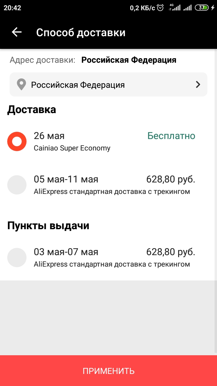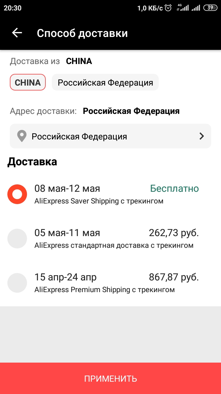 @vic039 а у вас версия Али какая? А то у меня и 8.20.35 и 8.20.95 доставку в любом случае платной делает, даже если в выборе есть возможность бесплатной, причем платной по самой дорогой логистике, даёт её поменять, но в результате все равно выходит самая дорогая доставка. В службе поддержки как всегда один ответ, обновить версию. Пробовал, толку нет.